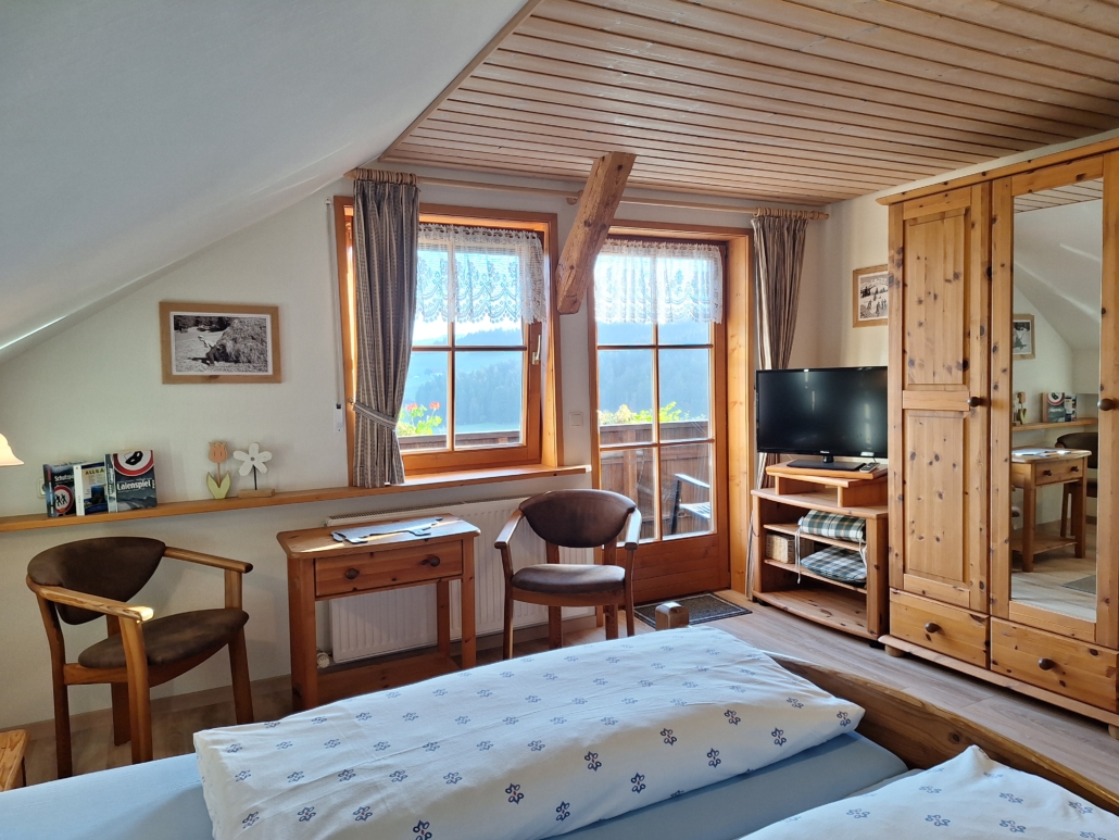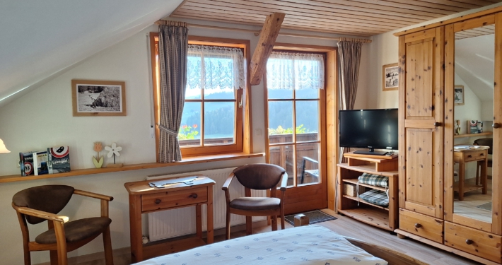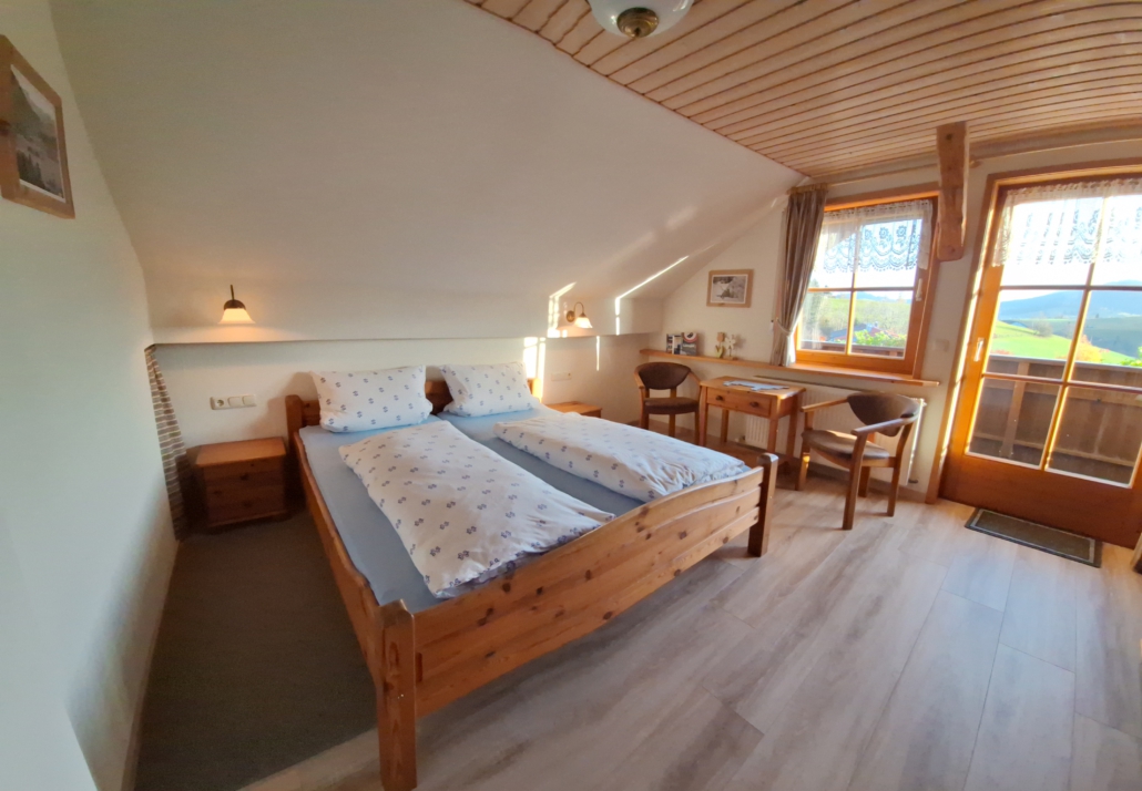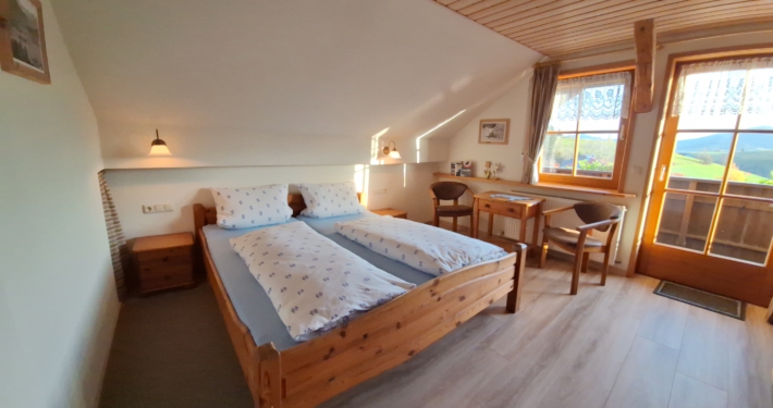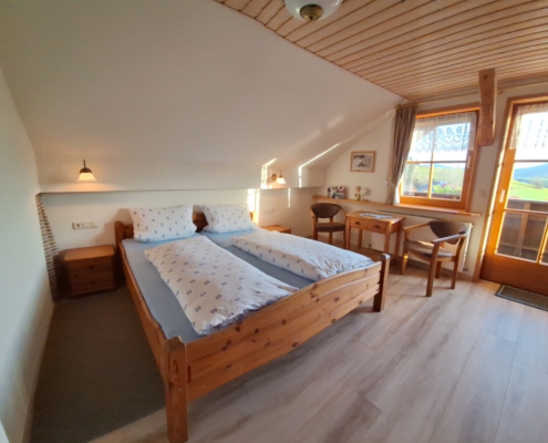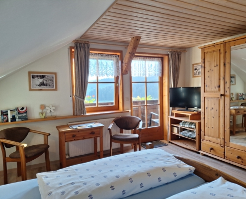 Unsere schöne und gemütliche Ferienwohnung „Jugetblick“ mit Balkon ist mit einem Wohn-Schlafraum und einer Koch-Essecke ausgestattet. Neben einem Bad mit Dusche und separatem WC befindet sich, durch eine Verbindungstür getrennt, ein zweiter Wohn-Schlafraum mit Dusche und WC.